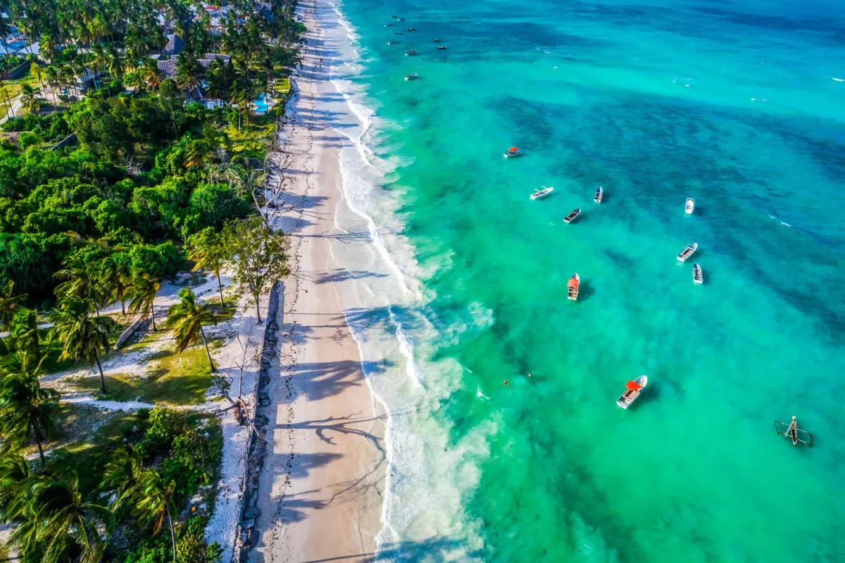Sink your feet into the powder‑white sands of Zanzibar, explore the emerald hills and secluded coves of Pemba Island, or dive into Mafia Island's dazzling lagoons alive with coral gardens, tropical fish, and gentle whale sharks.